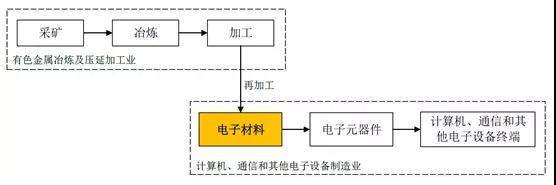 高純?yōu)R射靶材行業(yè)屬于電子材料領(lǐng)域,其產(chǎn)業(yè)鏈上下游關(guān)系如下: