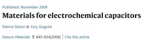 該文2008年由美國德雷塞爾大學的Yury Gogotsi和法國圖盧茲第三大學的Patrice Simon教授發表于Nature Materials,是超級電容器特別是非對稱超級電容器的開山之作。截至2021年2月17日,該文累計被引11,312次。