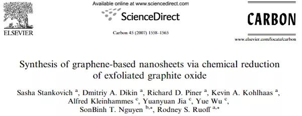 該文2007年由美國西北大學的SonBinh T. Nguyen和Rodney S. Ruoff教授等人發表于Carbon。截至2021年2月17日,該文累計被引10,520次。