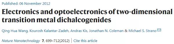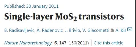 該文2011年由瑞士洛桑聯邦理工學院A. Kis教授等人發表于Nature Nanotechnology。截至2021年2月17日,該文累計被引9,140次。
