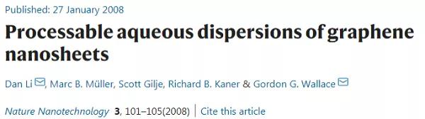 該文在2008年由澳大利亞臥龍崗大學Gordon G. Wallace教授和Dan Li教授等人發表于Nature Nanotechnology。截至2021年2月17日,該文累計被引7,217次。