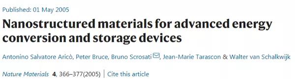 該文在2005年由羅馬薩皮恩扎大學Bruno Scrosati教授等人發表于Nature Materials。截至2021年2月17日,該文累計被引6,958次。