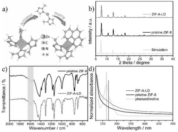 圖9 鄰二氮雜菲摻雜ZIF-8的結構及其表征[9]