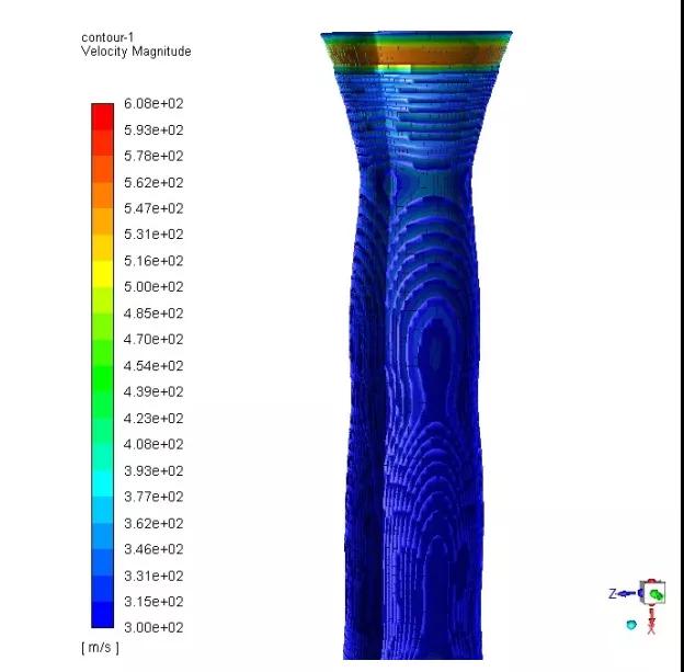 圖 2 Fluent 計算模擬的霧化流場結果(速度場)