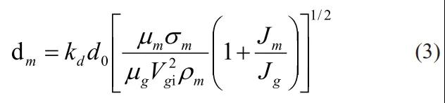 其中,dm 為粉末平均粒度,kd 為常數,一般為 40-50,d0 導流管直徑,Jm 為液態金屬流量,Jg為氣體流量,μm 和μg 分別為液態金屬和氣體的動力黏性系數,Vgi 為霧化氣流場的初始流速,σm 為液態金屬表面張力,ρm和ρg分別為液態金屬的流體密度和氣體的密度。