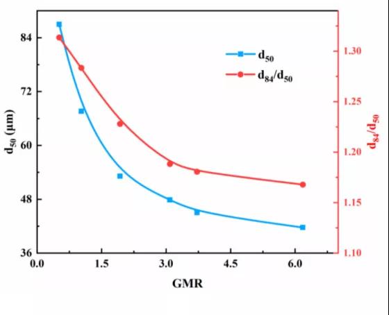 由公式可以看出,在霧化器結構和工藝參數確定地情況下,粉末的粒度只與金屬熔體的動力黏性系數 μm、金屬熔體的表面張力σm 以及金屬熔體的密度 ρm 有關。