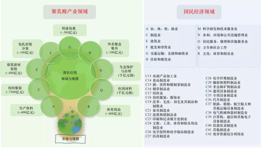 圖 1 聚乳酸產(chǎn)業(yè)及其涉及的國民經(jīng)濟(jì)領(lǐng)域