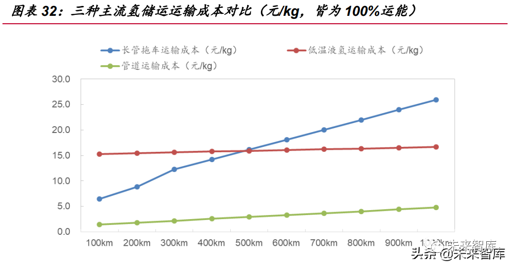 隨著大規模、長距離運氫需求的增加,低溫液氫輸送的優勢將會顯現,并成為中長 運距氫儲運的主流方式。從氫能發展更遠期來看,氫能產業發展將趨于成熟,用氫 需求將實現大規模化,且趨于穩定,屆時管道輸氫綜合優勢將成為長距離氫運輸最 佳選擇。