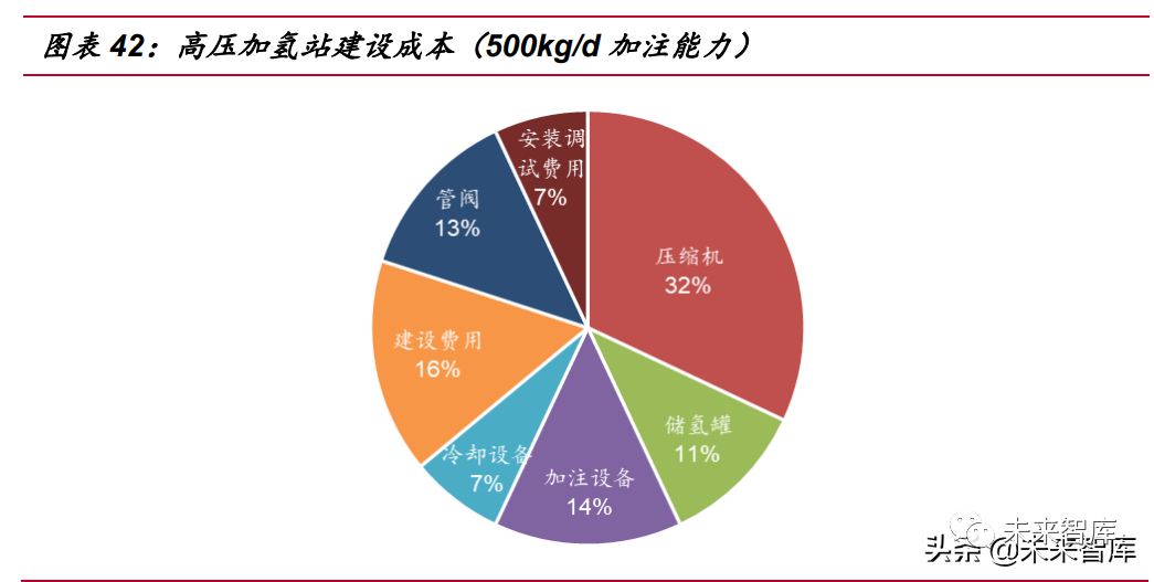 在當前以高壓氣態實現氫儲運的氫能發展初級階段,氫氣壓縮機是我國氫能儲運 所需的關鍵設備,當前國內大多數氫氣壓縮機主要依靠進口,投入及維護成本高,尤 其以加氫站所需壓縮機,以 500kg/d 加注能力加氫站建設為例,壓縮機成本占據加氫 站總成本的三分之一。