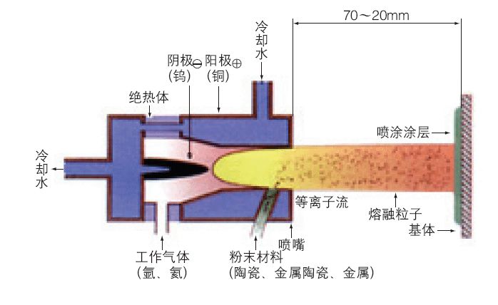 影響熱噴涂涂層性能的主要因素是原料在噴涂焰流中的熔融狀態(溫度)和飛行速度(微粒的動能)。在大氣等離子噴涂之后出現的各種熱噴涂技術,無一不是通過提高微粒溫度或速度來獲得性能優異的涂層。此外,由于等離子噴涂、爆炸噴涂等技術無法使用納米粉體進料,在制備納米結構涂層時只能通過造粒將其制為微米級粉體用于噴涂,噴涂工藝和涂層性能均受到限制。因此,研究人員還開發了懸浮液等離子噴涂(SSPS),以便獲得特定組織的納米結構涂層。
