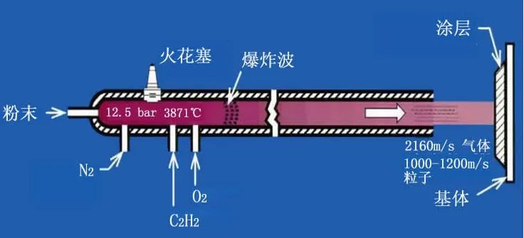 爆炸噴涂技術的原理是利用氣體爆炸后產生的能量將粉末原料加熱熔化,使其以極高速度沉積在工件表面,形成堅固的涂層。該技術在航空發動機等關鍵零部件修復和耐磨防護中表現出無法替代的優勢,受到世界范圍的研究和重視,已成為生產高質量耐磨涂層最有效的技術。