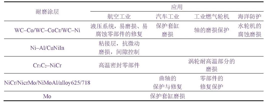 摩擦磨損造成的能量和物質損失均源自材料表面,因此,各類表面工程技術已成為提高零構件材料減摩、耐磨性能的重要方法,其中最常見的應用便是耐磨涂層。市場上制備材料表面涂層的方法較多,包括熱噴涂、化學氣相沉積(CVD)、物理氣相沉積(PVD)、電鍍等,熱噴涂技術是應用最廣泛的表面工程技術之—,在航空發動機、重型燃氣輪機等高端裝備的科研和生產中有著不可替代的作用。