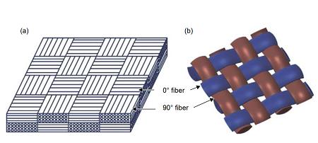 圖 1 二維 C/SiC 復合材料的微觀結構(a)總體結構;(b)每層編織結構
