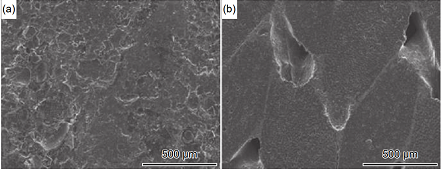 圖 13 C/SiC 復合材料的超聲振動輔助加工 SEM 圖 (a)普通銑磨;(b)超聲振動銑磨