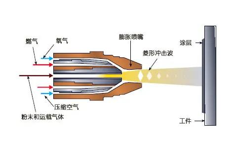 超音速火焰噴涂是一種新型高能火焰噴涂方法,通常被稱(chēng)作HVOF(High velocity oxygen fuel)特點(diǎn)是:火焰的流動(dòng)速度極快,超過(guò)聲音的傳播速度,可達(dá)2200m/s,這要比普通熱噴涂工藝的焰流速度快5~10倍。