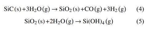 SiC/SiC 復合材料在水氧環境下,除了與氧氣發生反應外,還會與水蒸氣發生反應,其中 SiC 基體的反應通常是: