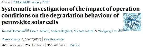 6. 系統研究操作條件對鈣鈦礦太陽能電池降解行為的影響