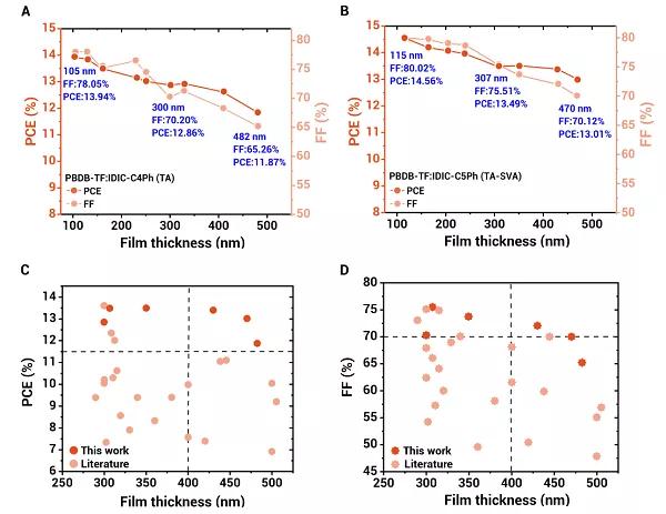 中科院青島能源所The Innovation:側(cè)鏈微調(diào)控誘導(dǎo)雙通道電荷傳輸實(shí)現(xiàn)高效厚膜有機(jī)太陽能電池