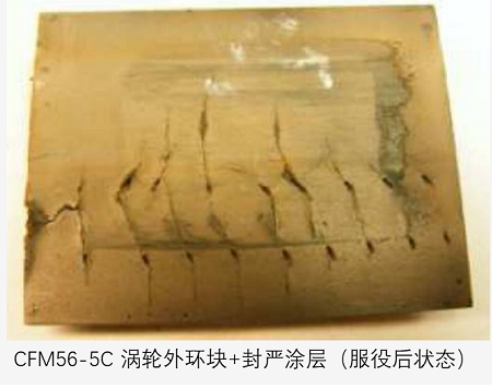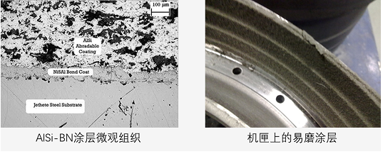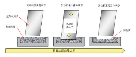 易磨涂層(Abradable Coating),是發動機葉尖封嚴系統的一部分,也叫“封嚴涂層”。通常應用于機匣零件中的跑道面,主要作用是減少葉尖碰磨損傷。由于易磨涂層需要跟葉尖進行對磨,為了保護葉尖,易磨涂層一般硬度小,結合力差,從而能夠保證葉尖在大服役狀態碰上時,能夠有效地刮削涂層。