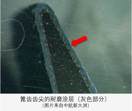 既然有“玻璃心”涂層,那肯定也有“勇敢的心”——耐磨涂層(Wear Resistant Coating),主要應用于需要防止摩擦磨損以及沖擊磨損的發動機零部件,例如軸類零件、W封嚴環以及低渦葉片緣板的配合面。當然,在蜂窩封嚴系統中,也存在著耐磨涂層,用來防止篦齒的齒尖發生磨損。還有一種耐磨涂層,多用于軍用航空發動機的壓氣機葉片,用來面對惡劣環境下的抗沖蝕磨損。