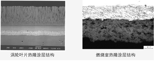 粘結層有熱噴涂類的MCrAlX以及擴散類的NiAl/NiPtAl類型,而面層現如今依舊多采用8YSZ(8%Y2O3 stabilised ZrO2)材料,工藝針對不同零件分為等離子噴涂和電子束物理氣相沉積。