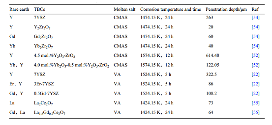 通過(guò)上述分析,稀土摻雜可以一定程度上提高涂層抗 CMAS 能力以及化學(xué)惰性,在熱物理性能與力學(xué)性能提高的輔助下,摻雜的涂層不僅能夠滿足下一代高性能航空發(fā)動(dòng)機(jī)的技術(shù)要求,同時(shí)對(duì)于未來(lái)新型熱障涂層的進(jìn)一步改性提供可行性參考。
